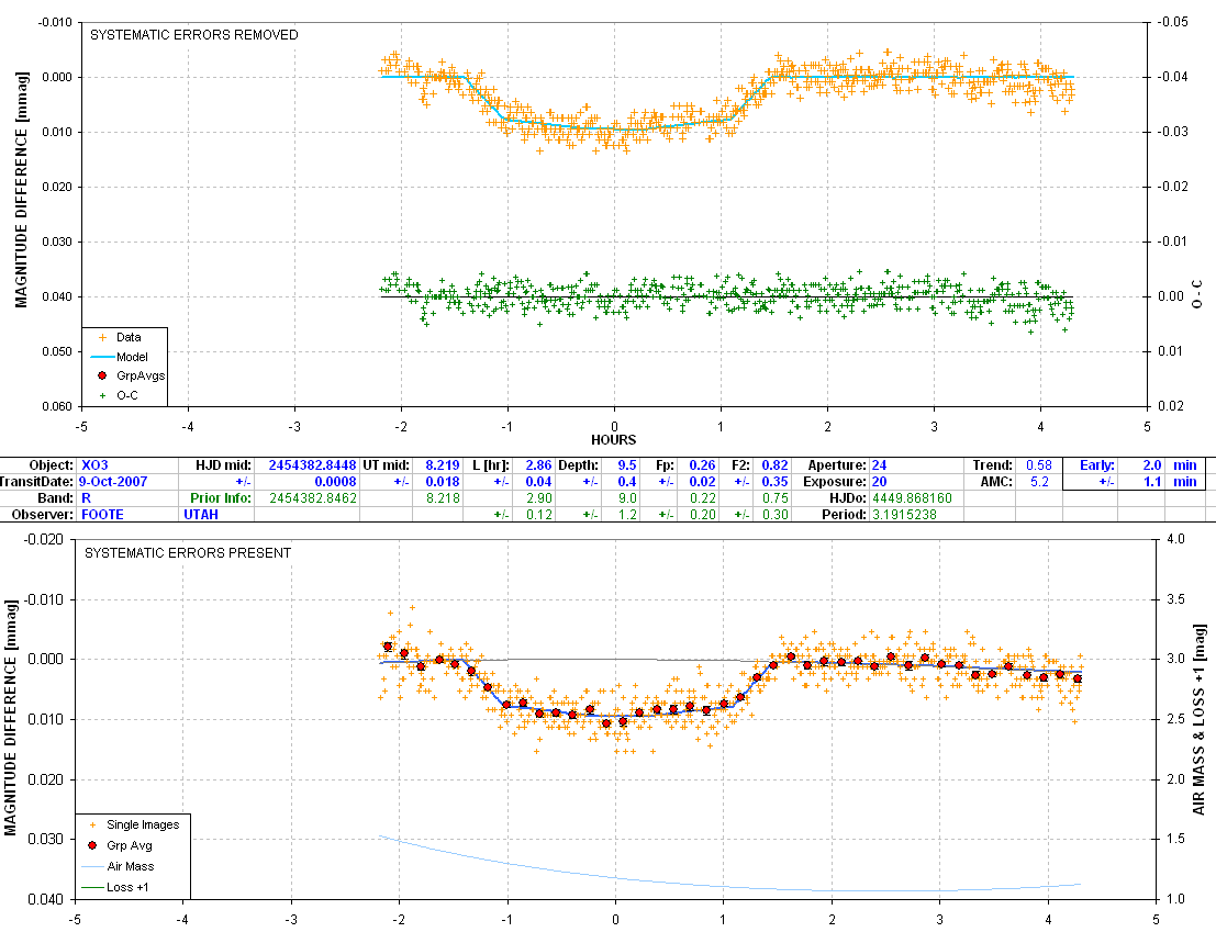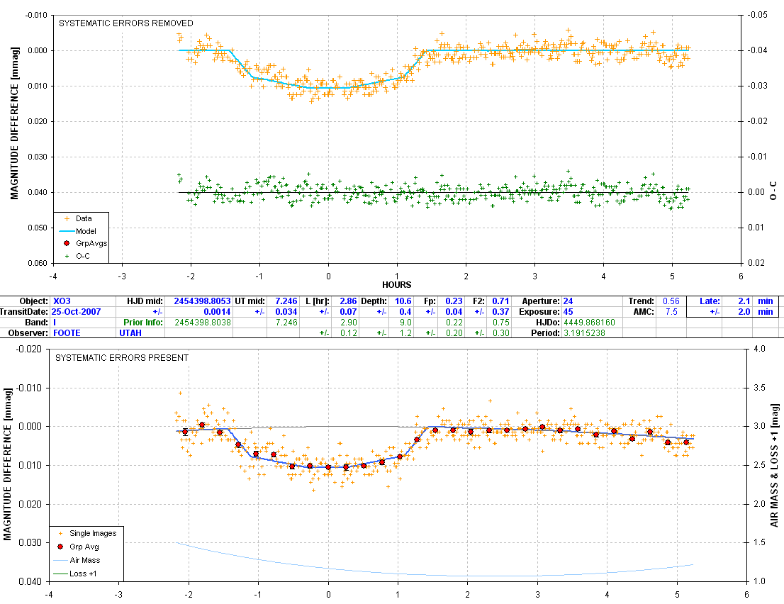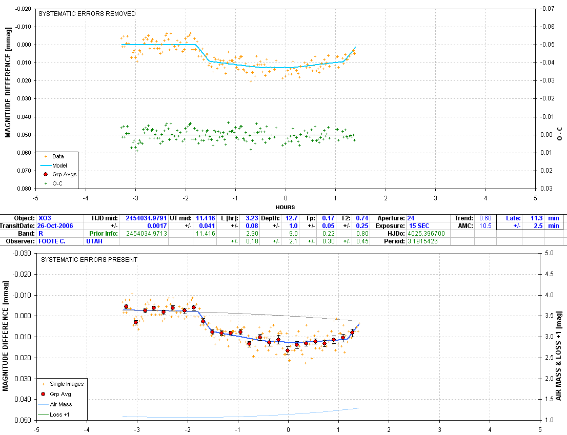 Length [hrs]; depth [mmag]; Fp = fraction of transit that's partial;