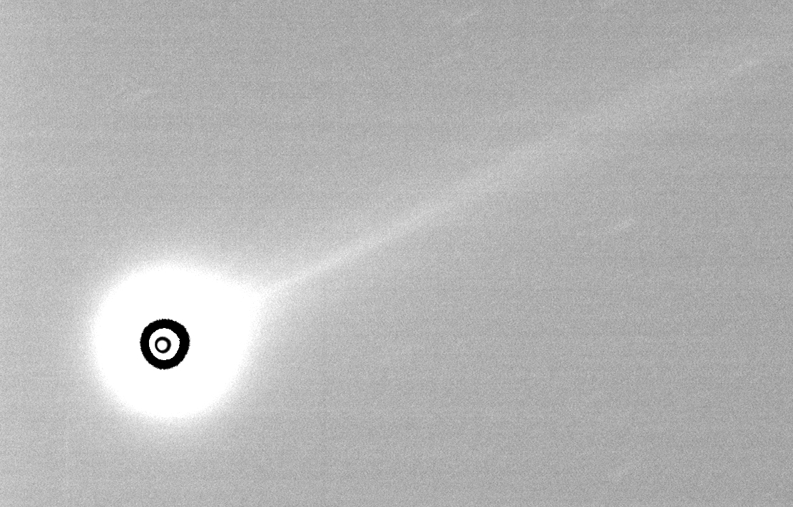 There was been much discussion about the comet breaking-up ~ Nov 13 or 14, causing more surface area to be exposed and thereby accounting for a brightening. The only observational evidence for this seemed to be spatial structure image enhancement, showing distinct bright spots. I remained unconvinced, because I think the enhanced images are also compatible with newly formed jets on the sides, as well as near the front of the nucleus, which extend into the inner coma. There was convincing evidence that there were filamentary-like structures within the coma (inner and outer) that were bend backwards for eventual joining with the tail. So my default position had become that Comet ISON was still intact but was simply more active in producing jets that feed the coma with greater than ever amounts of gas and dust.