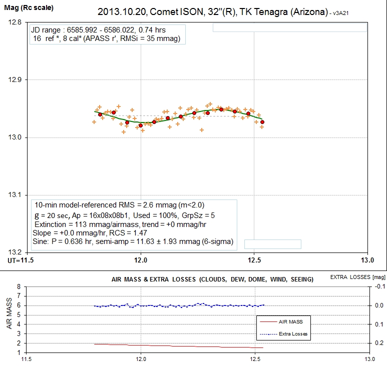 a coma diameter of 50,000 km r'-mag = 11.66. For