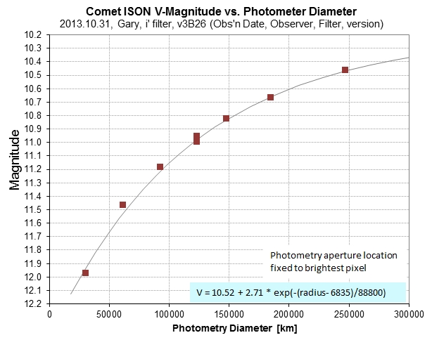 For a coma diameter of 50,000 km V-mag = 12.19. For