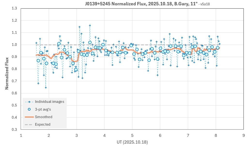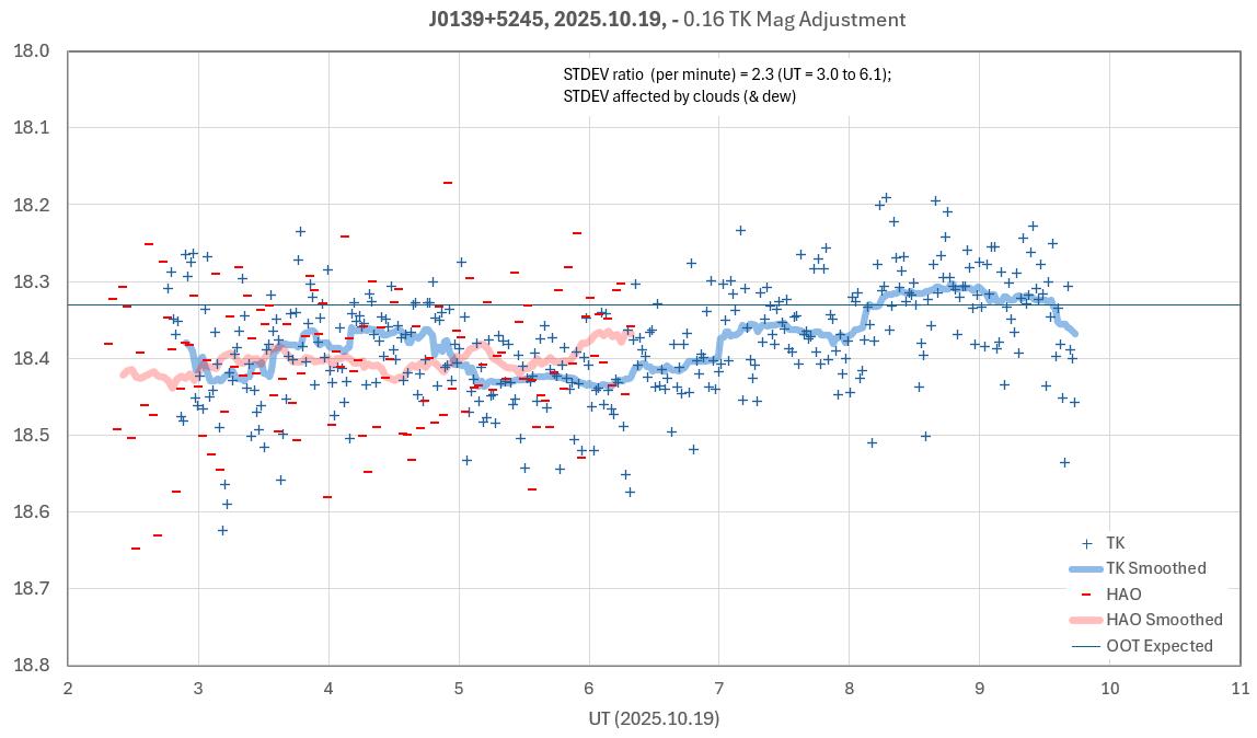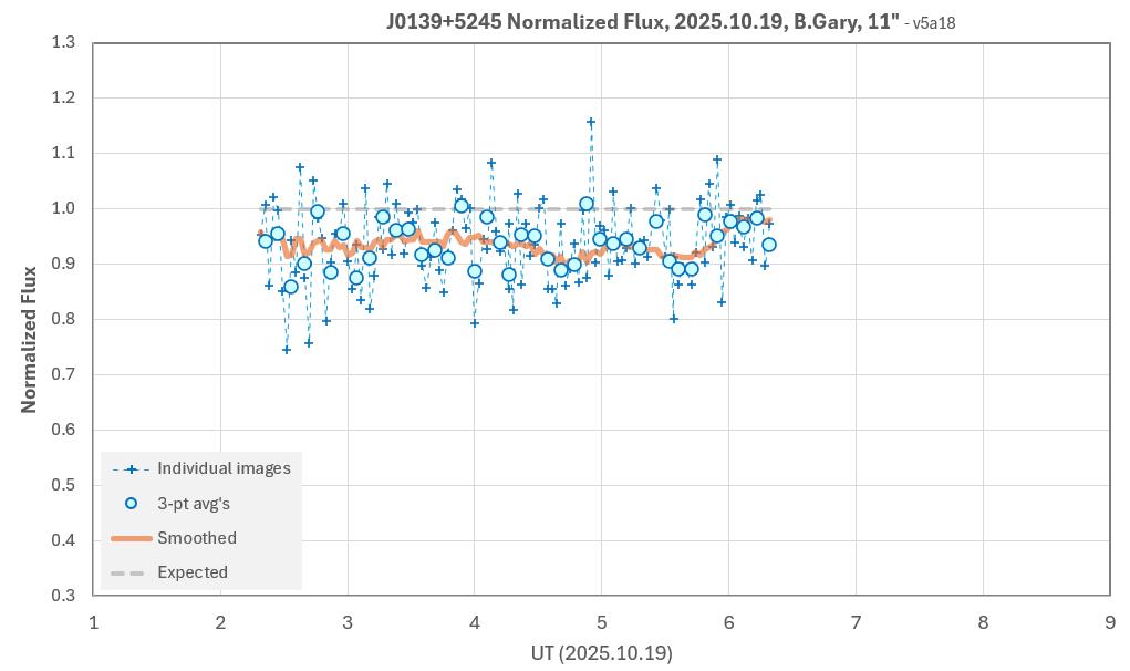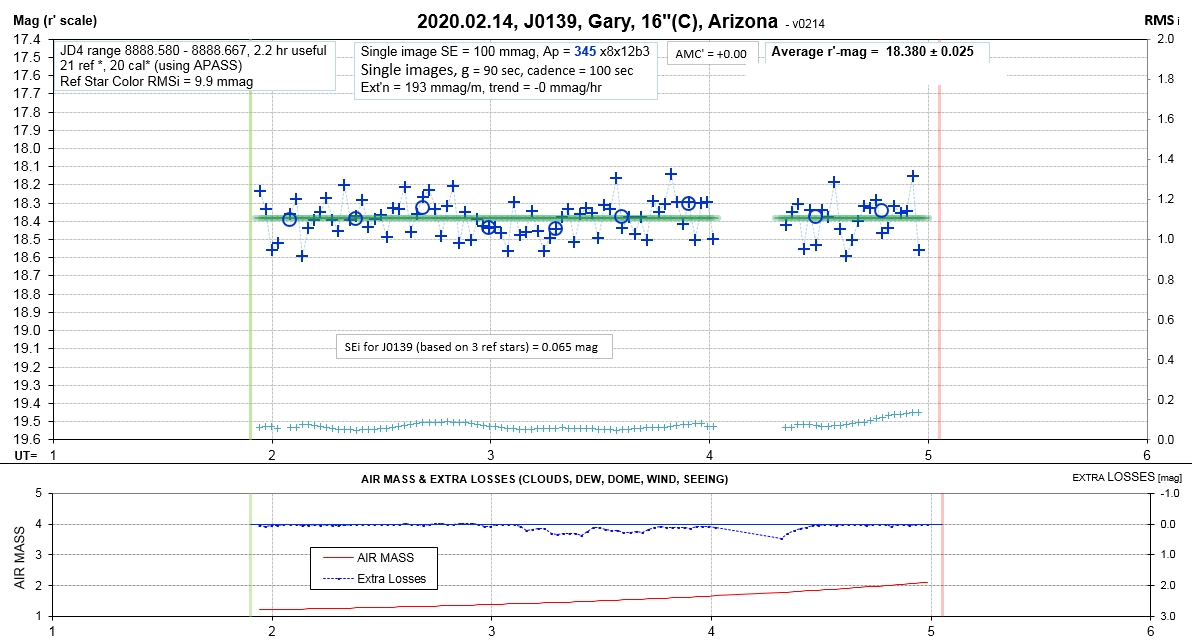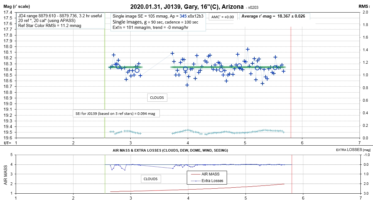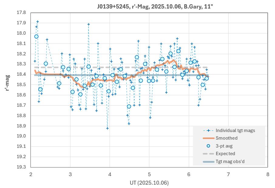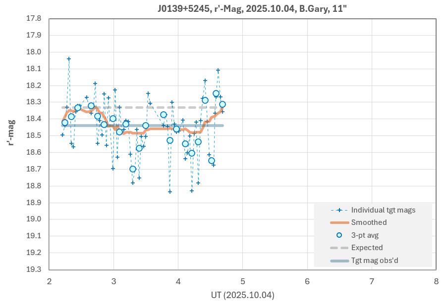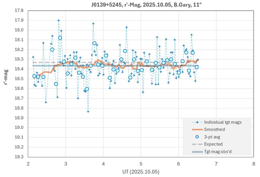 The target star, J0139, is faint (V = 18.4) so unfiltered is the