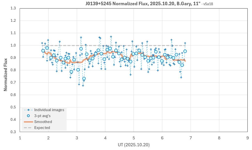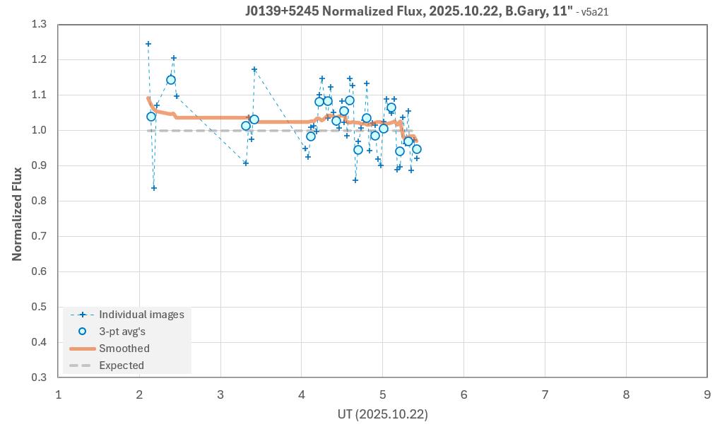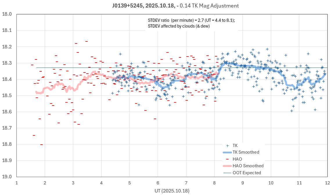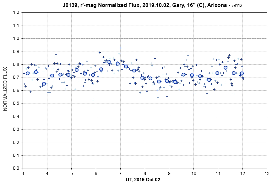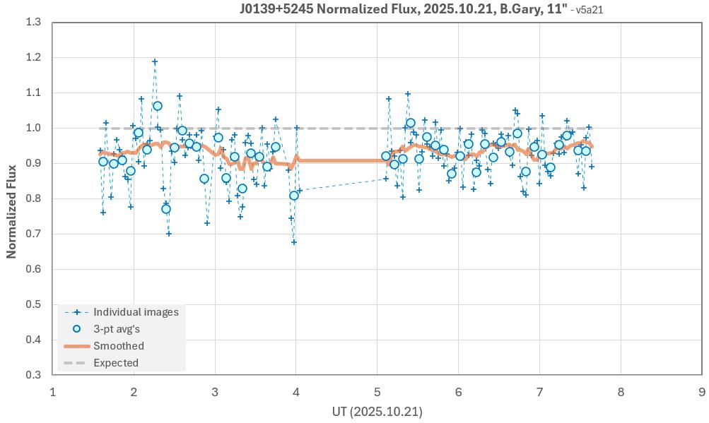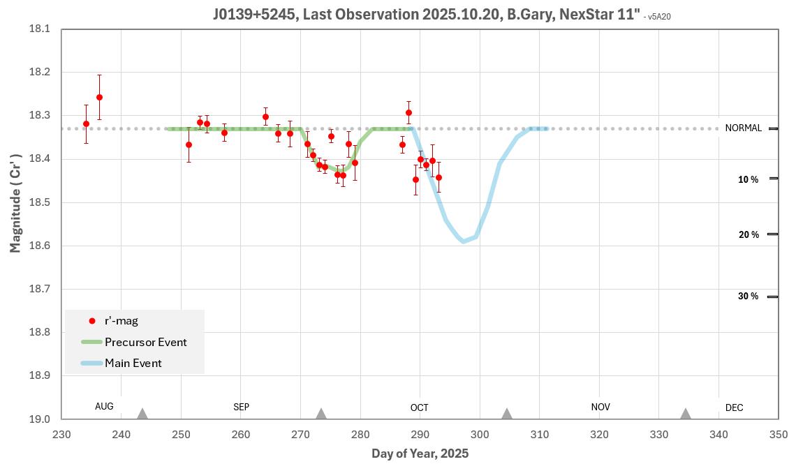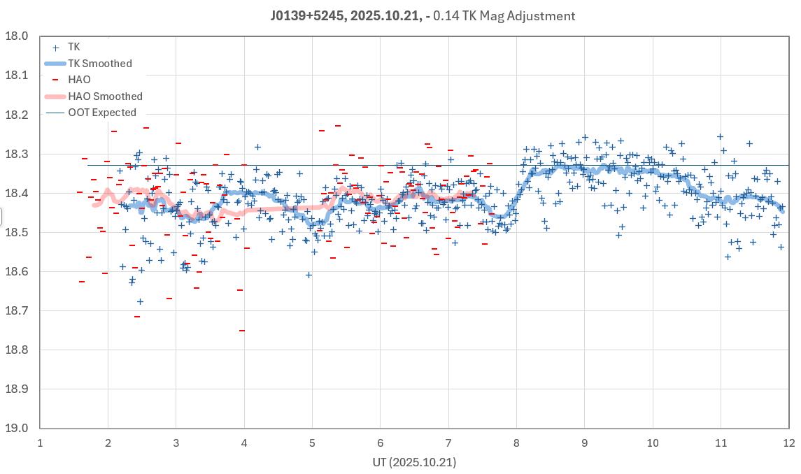 The target star, J0139, is faint (V = 18.4) so unfiltered is the