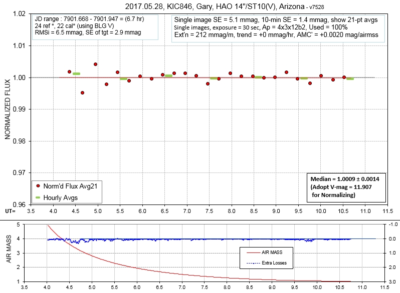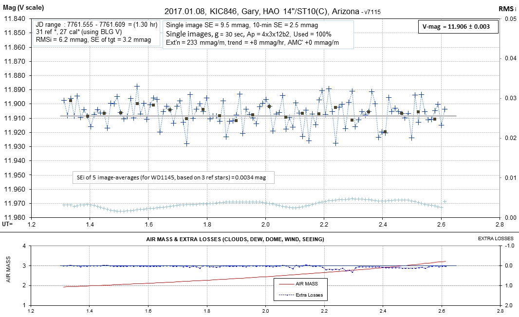 FOV 14.0 x 9.4 'arc showing KIC846 (red square) and 25 calibrated