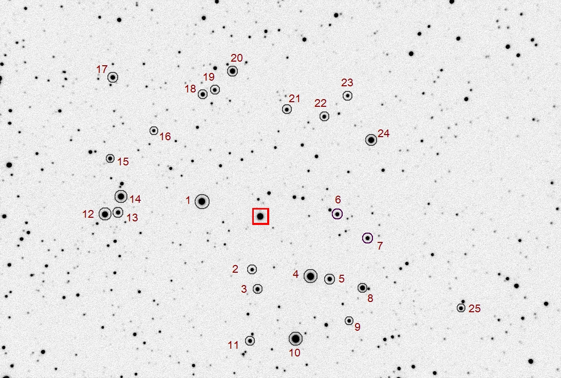 Here's a smaller FOV finder chart showing 25 stars that have been