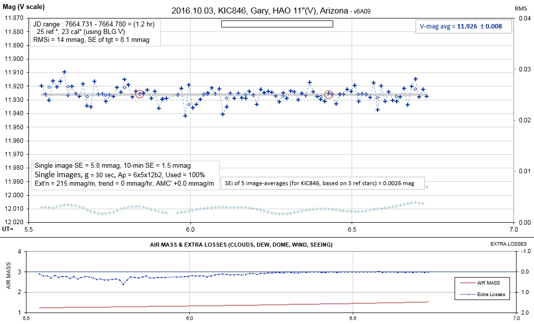 FOV = 26 x 18'arc, north up, east left. KIC846 is in the square.