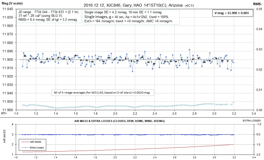 All-sky photometry of KIC846 and 25 nearby stars. Left panel is