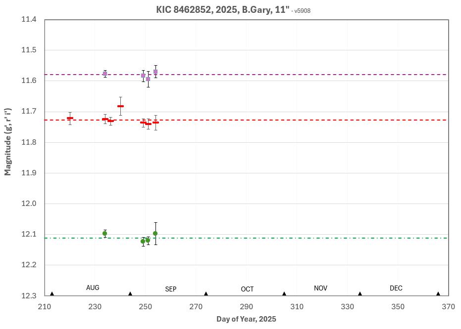 V-mag = 11.85, g'-mag =12.046, B-V = +0.51 (APASS)