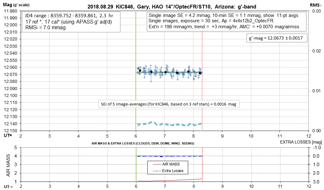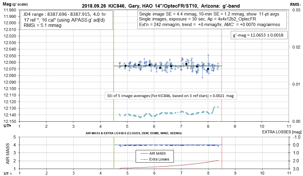 g', r' and i'-magnitudes for the past 7 months. The "OOT